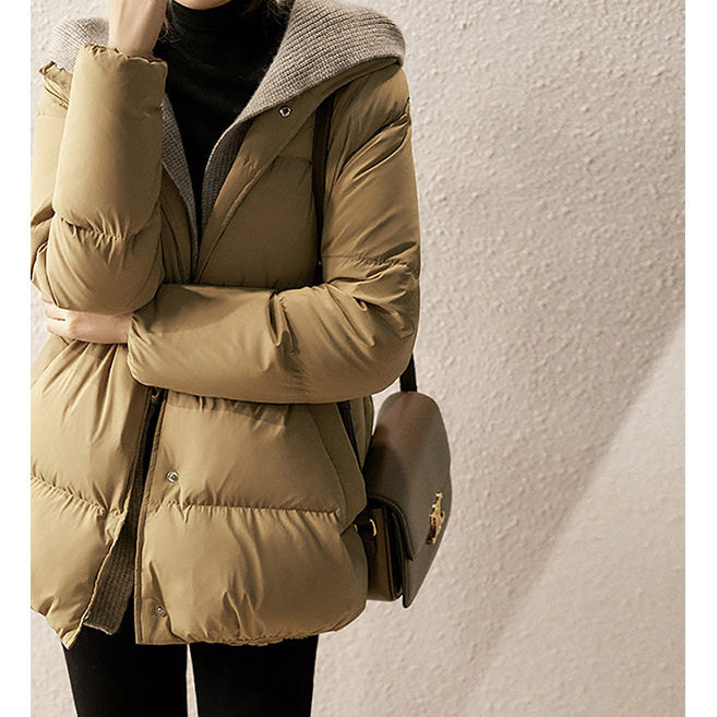 欧货2025冬休闲百搭毛线围脖90白鸭绒羽绒服女中长款连帽显瘦外套