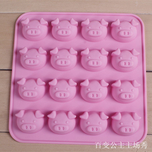 16连可爱卡通小猪头像蛋糕布丁甜点巧克力手工皂硅胶烘焙模具包邮