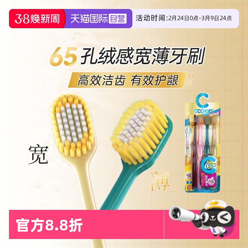 【自营】日本CCOKIO宽头65孔牙刷软毛成人男士女士专用家庭装家用