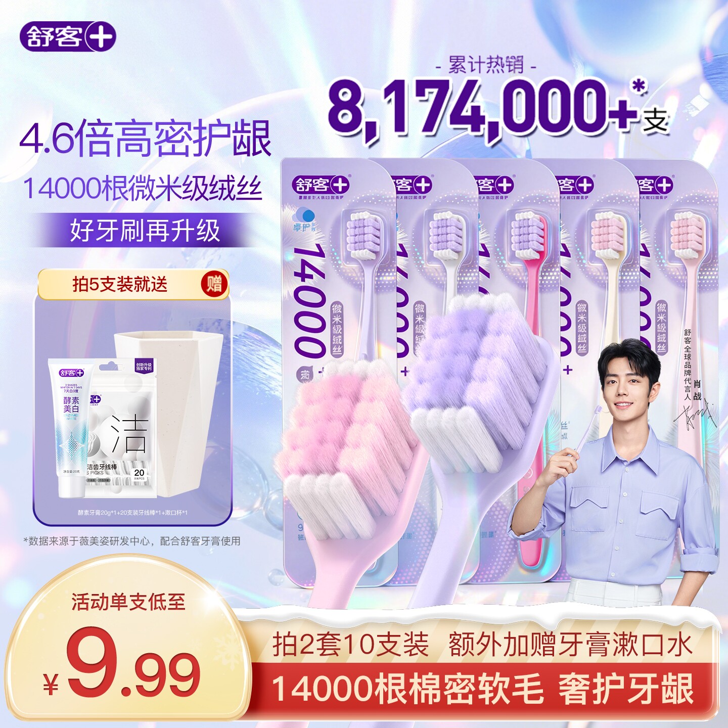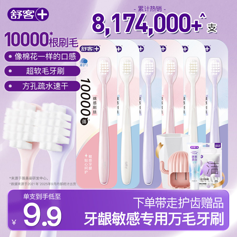 舒客万根软毛牙刷软毛成人宽头超软第一名女男士专用家用官方正品