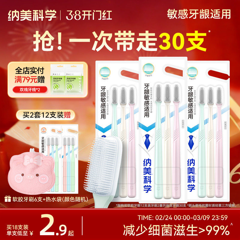 纳美小宽头牙刷软毛成人家庭组合装情侣女男士专用品牌官方旗舰店