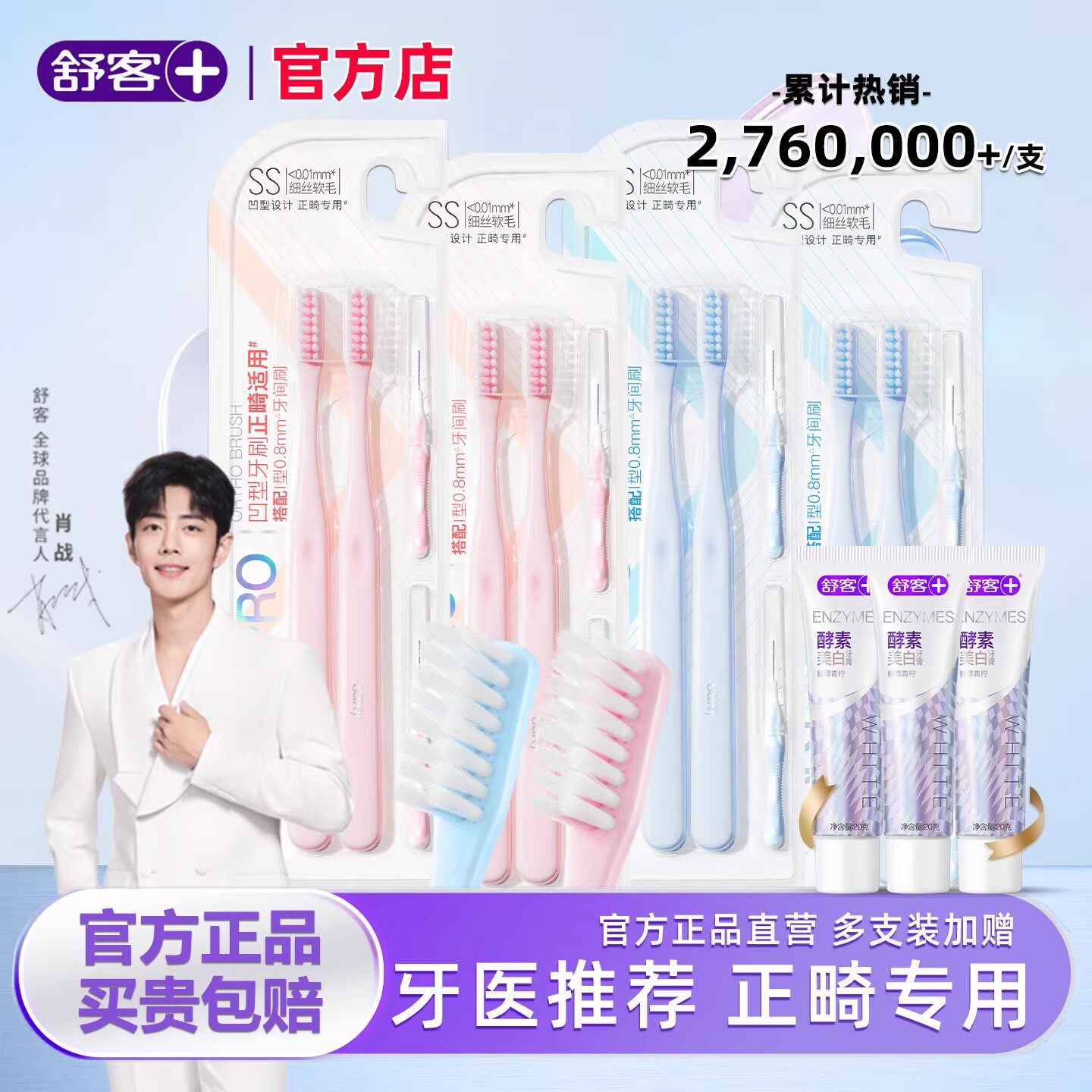 舒客正畸牙刷软毛成人儿童矫正牙齿专用小头牙刷牙缝刷戴牙套箍牙