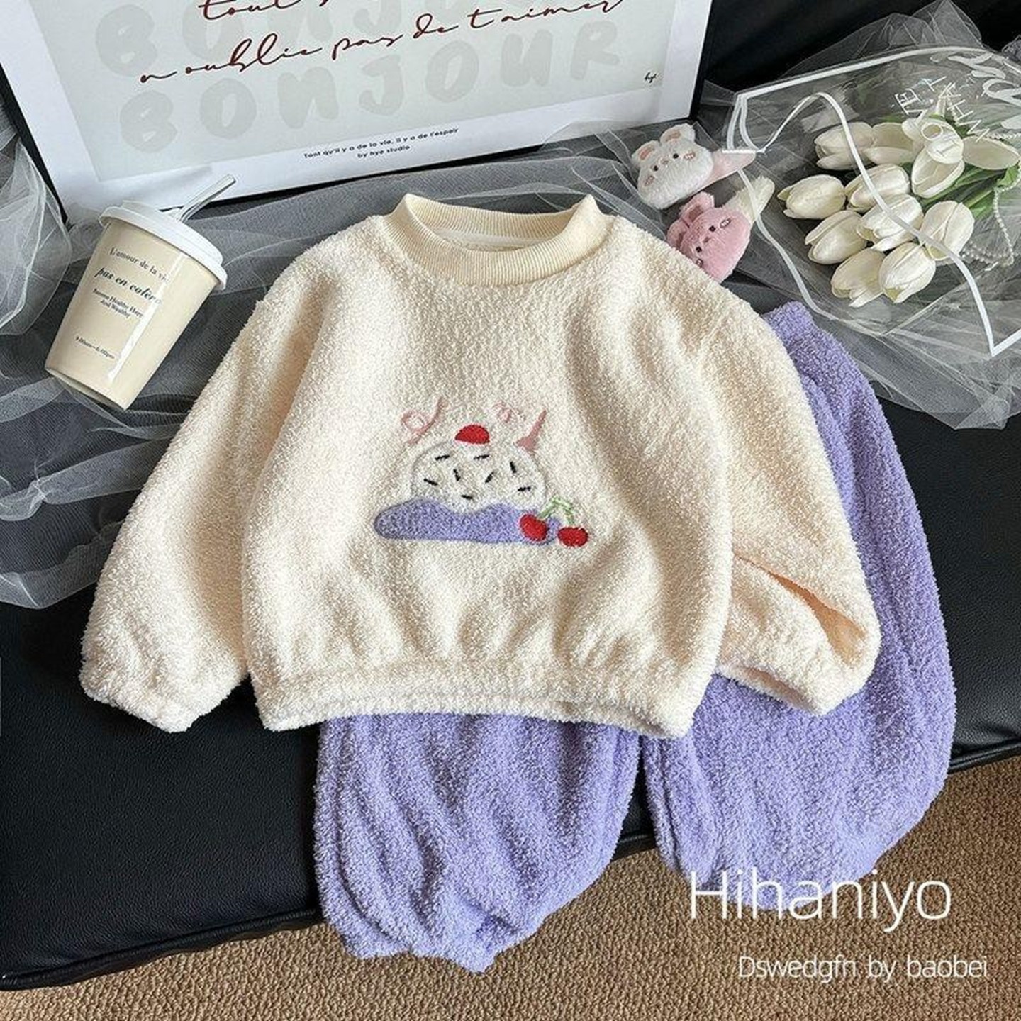 儿童睡衣家居服套装 男童女童杨梅绒娃娃领睡裤 起居服 冬款童装