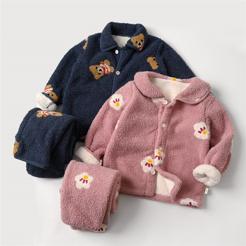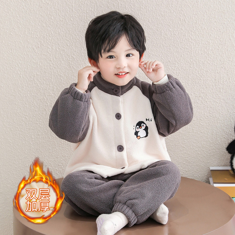 儿童睡衣套装冬季新款保暖杨梅绒加厚加绒可外穿秋冬法兰绒家居服