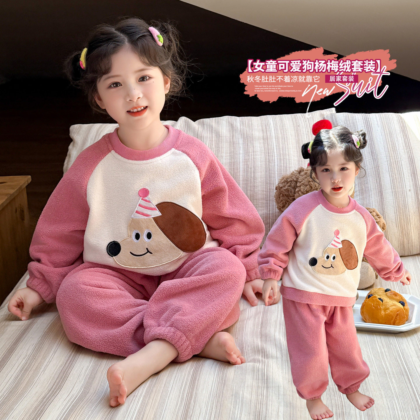 儿童睡衣套装秋冬季女童2025新款杨梅绒女孩宝宝分体式保暖两件套
