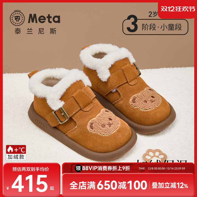泰兰尼斯雪地靴2025冬季新款勃肯靴子儿童加绒保暖靴女童可爱皮靴