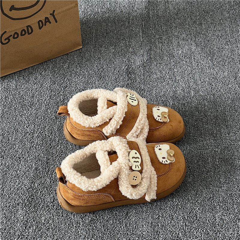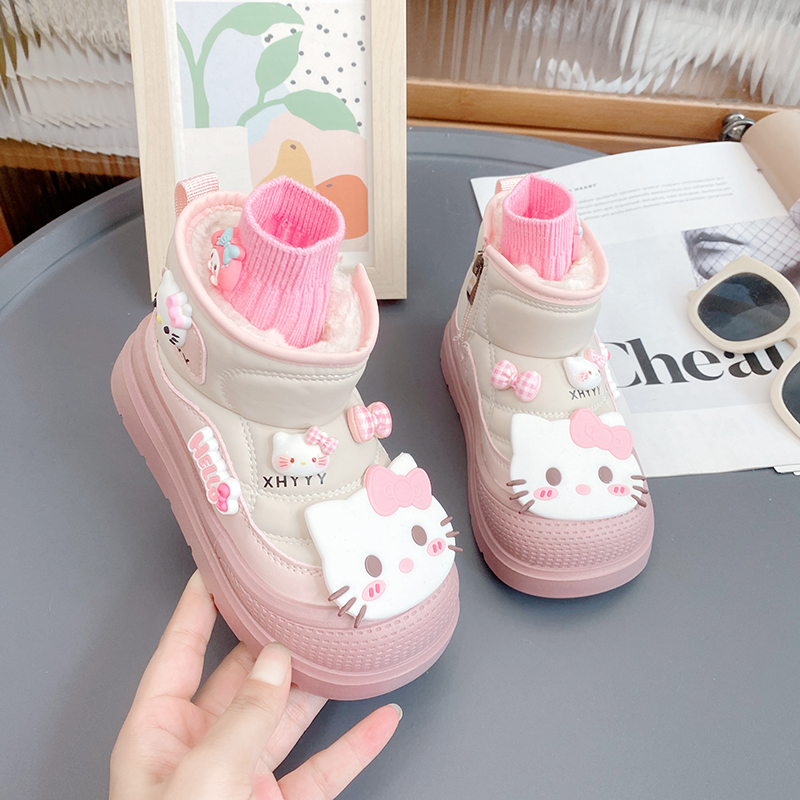 儿童加绒雪地靴冬季新款KT猫棉靴保暖洋气短靴可爱毛毛鞋女宝靴子
