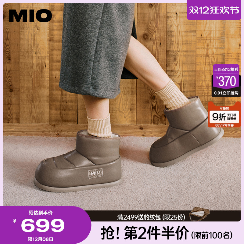 MIO米奥冬雪地靴厚底加绒加厚可爱圆头短靴时尚毛绒保暖靴子女鞋