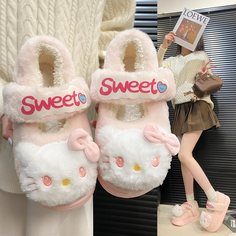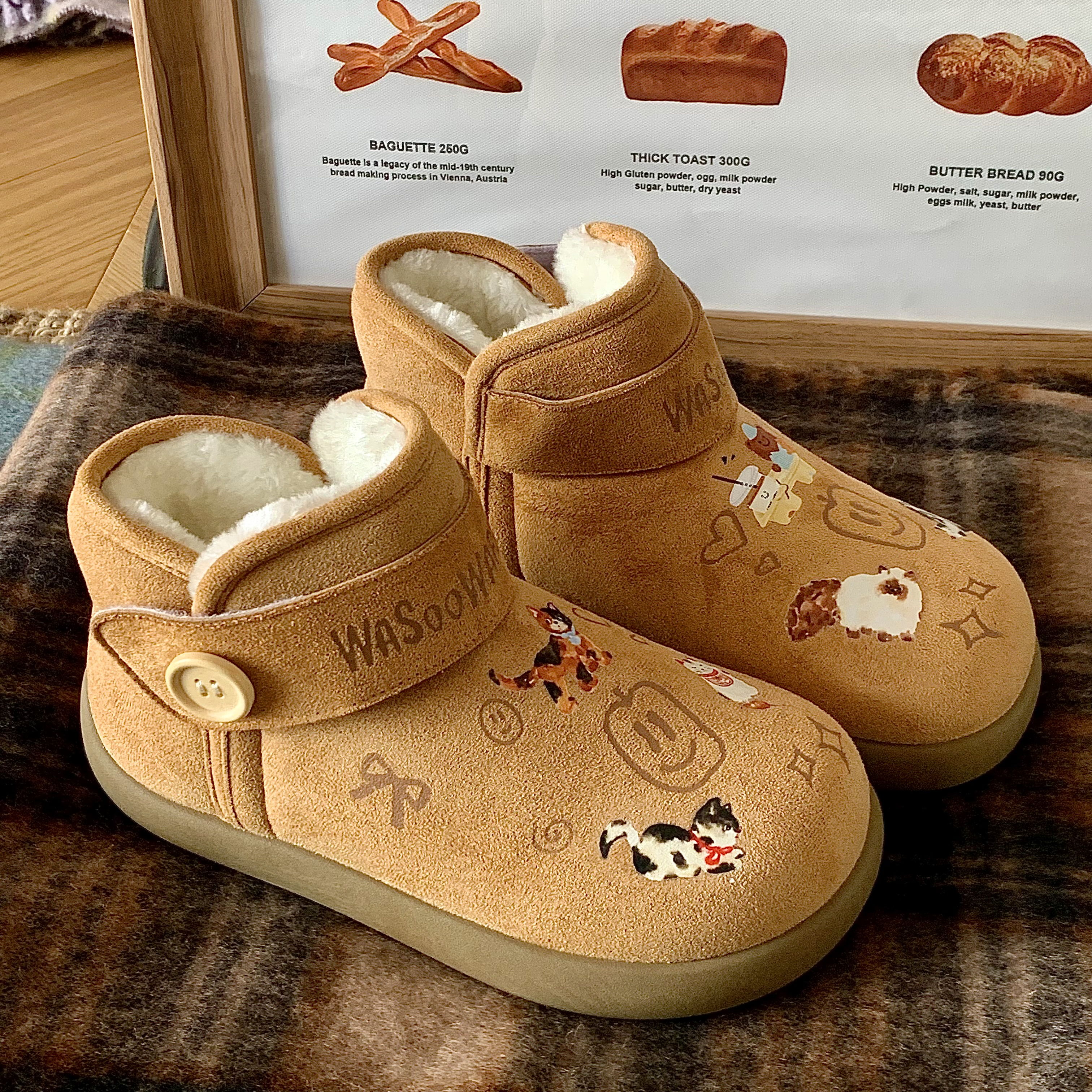 卡通少女保暖棉鞋女冬季加绒加厚新款居家外穿毛毛鞋可爱雪地靴子