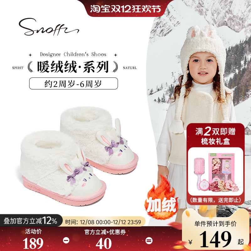 斯纳菲女童雪地靴可爱毛绒冬季2025儿童加绒加厚保暖公主宝宝靴子