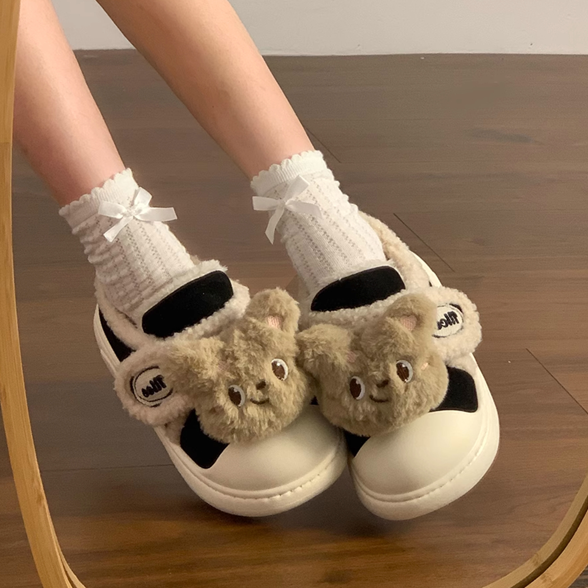 小熊包跟棉鞋女冬季新款魔术贴可爱厚底外穿加绒保暖东北雪地靴子