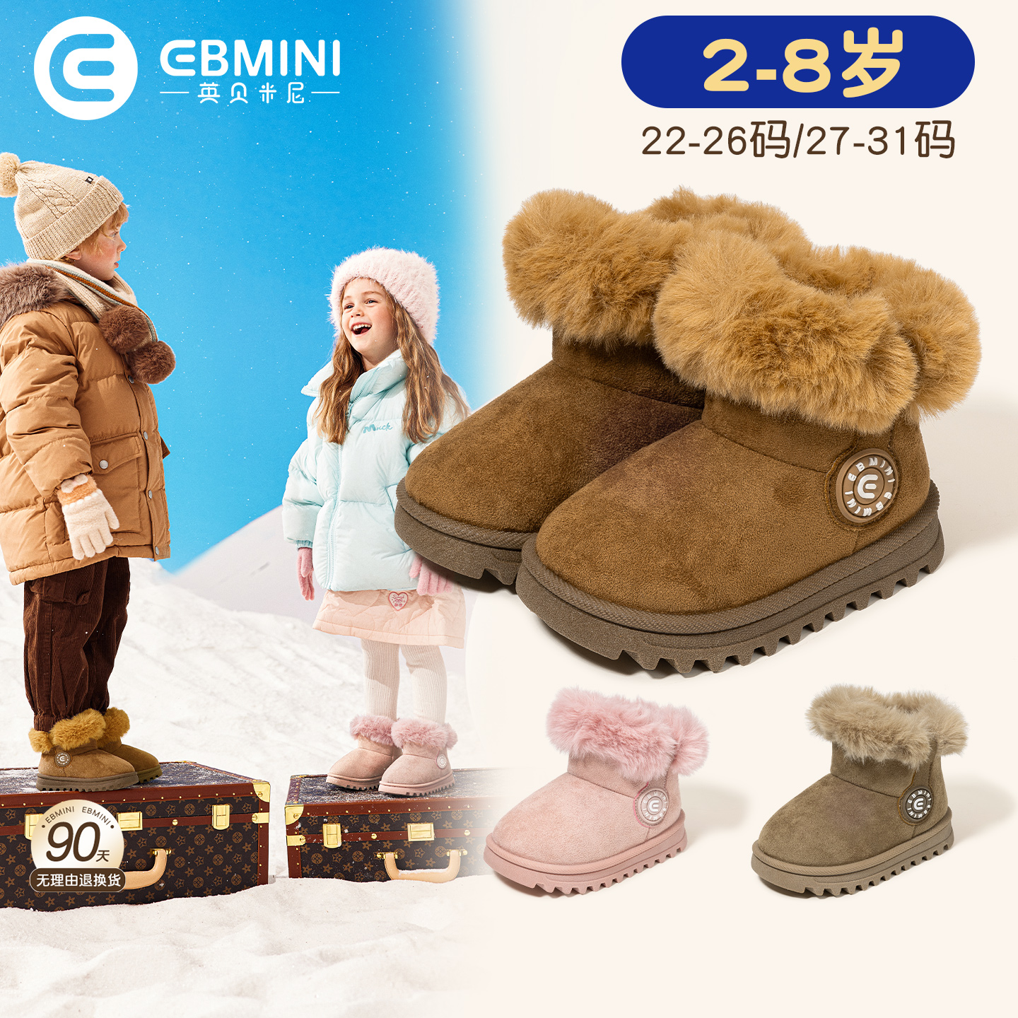 英贝米尼儿童雪地靴2025年冬季可爱女宝宝靴子保暖加绒女童低筒靴