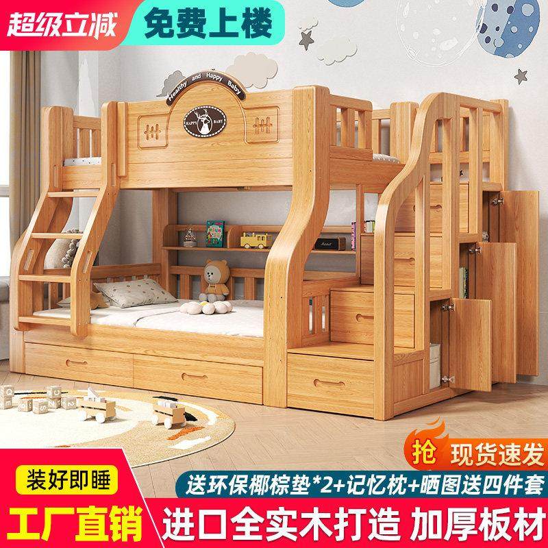 实木床橡木多功能上下床双层床儿童床子母床高低床双人床上下铺床