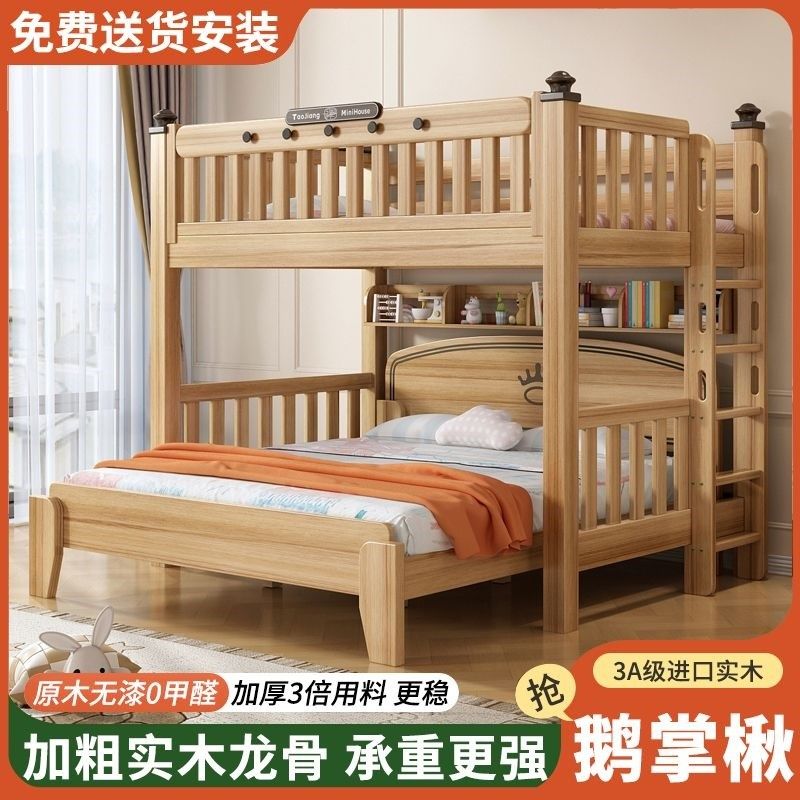 鹅掌楸实木上下床高低床子母床双层床两层上下铺儿童床成人母子床