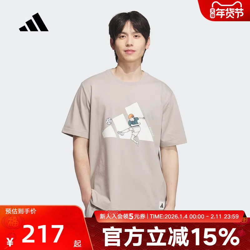 adidas阿迪达斯夏趣味徽标足球风半截袖男宽松短袖T恤JD8211