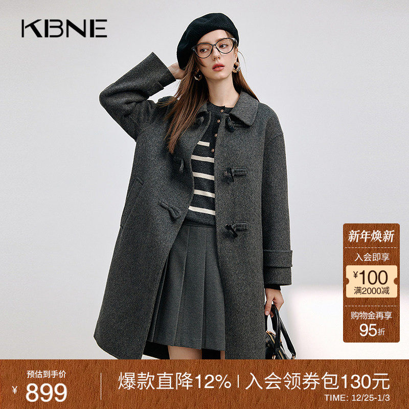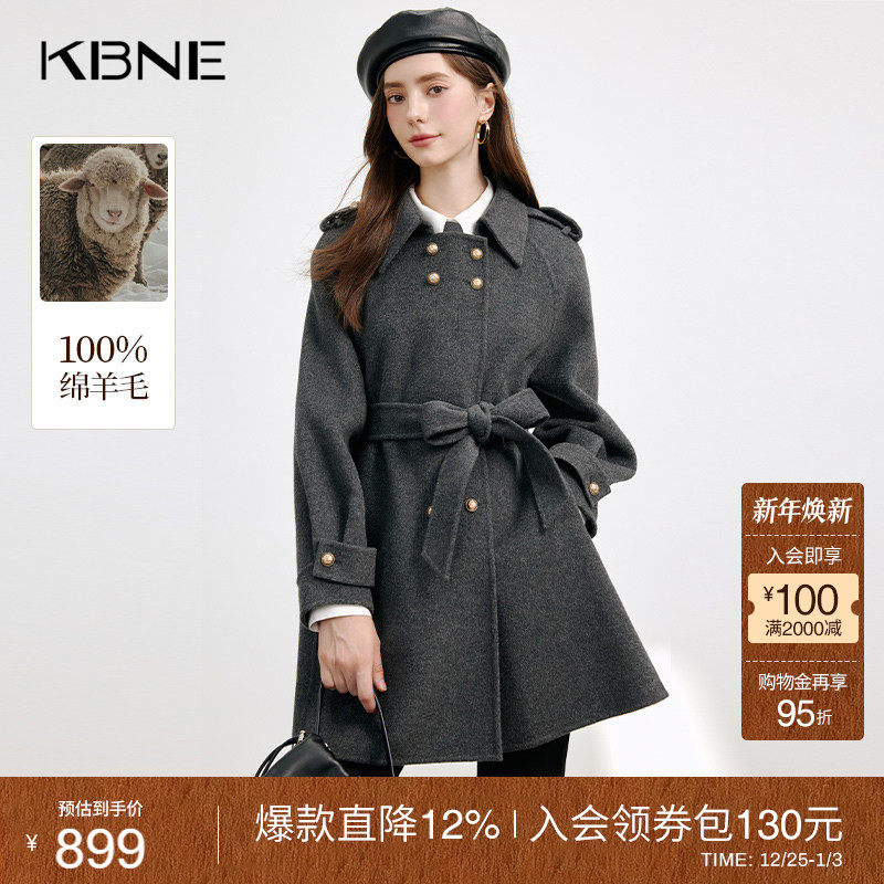 【全羊毛】KBNE毛呢外套呢子大衣2025新款灰色长袖小个子秋冬女装