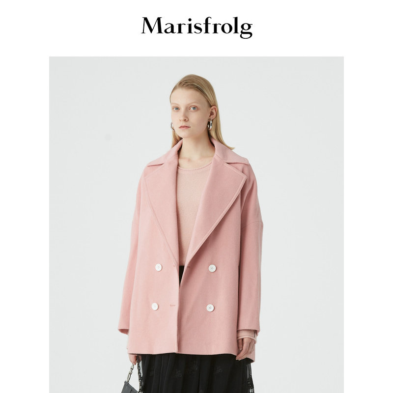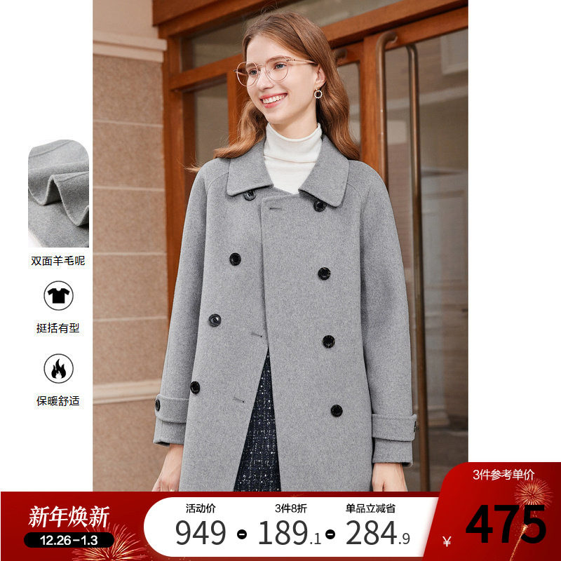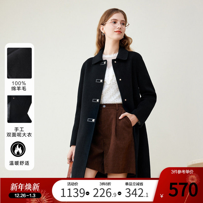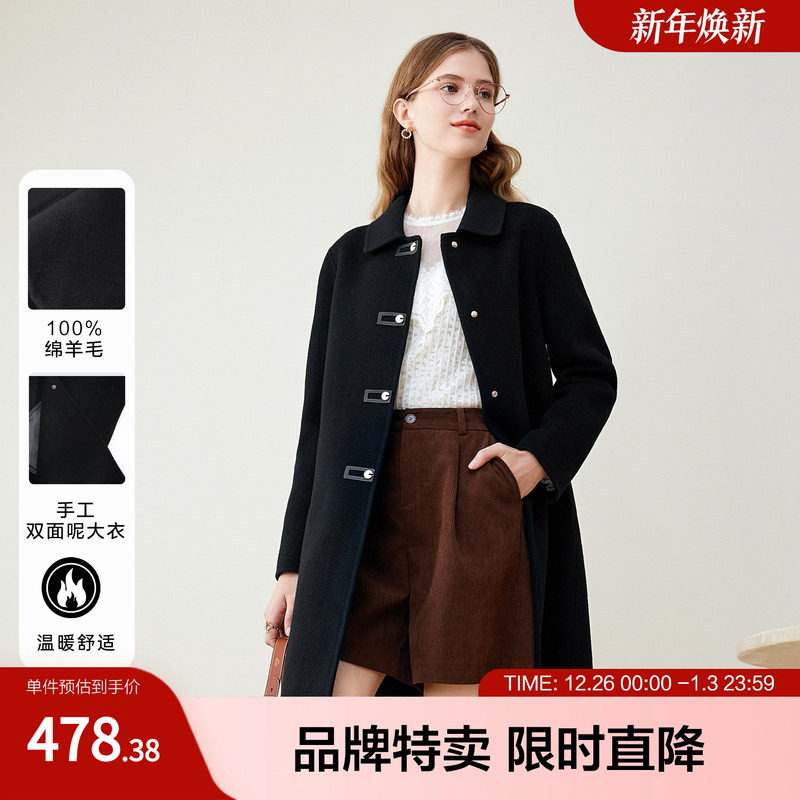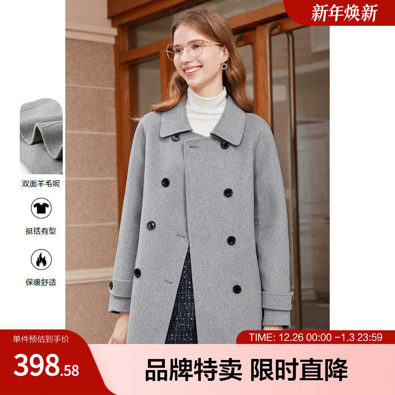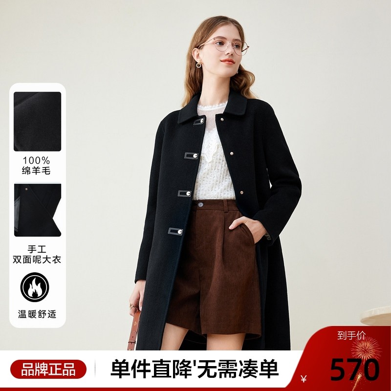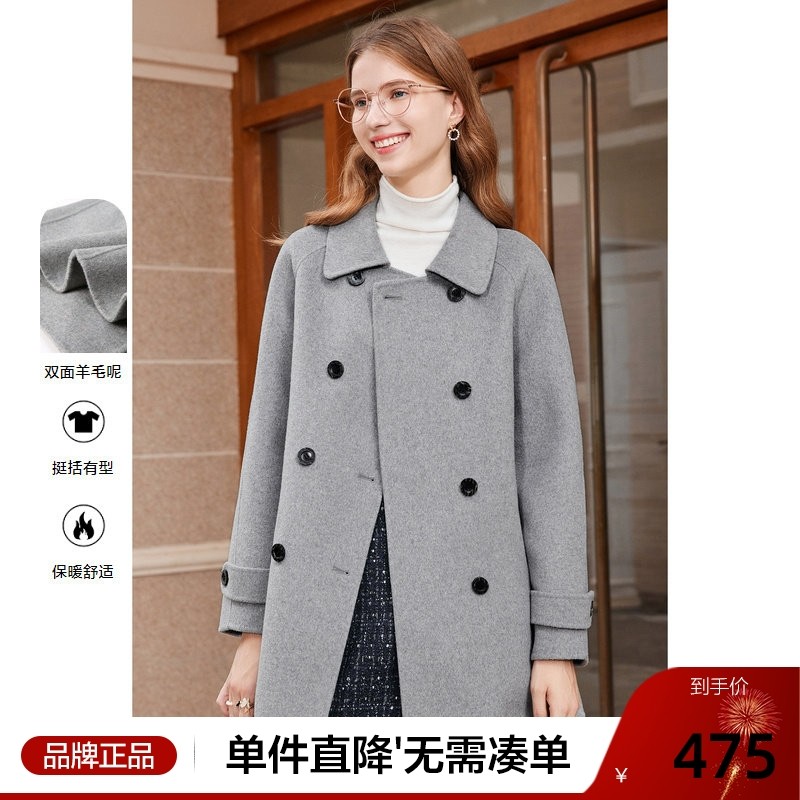 betu百图女装2023年冬季新款宽松双排扣双面呢毛呢外套呢子大衣