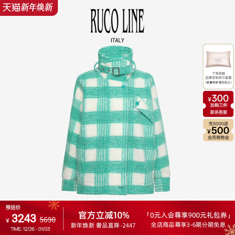 【绵羊毛】Ruco Line如卡莱格纹毛呢大衣外套呢子大衣女商场同款