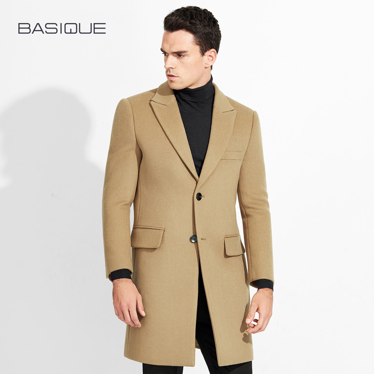 CNC男装奥莱中长款羊毛大衣秋冬新款毛呢外套呢子大衣翻领上衣