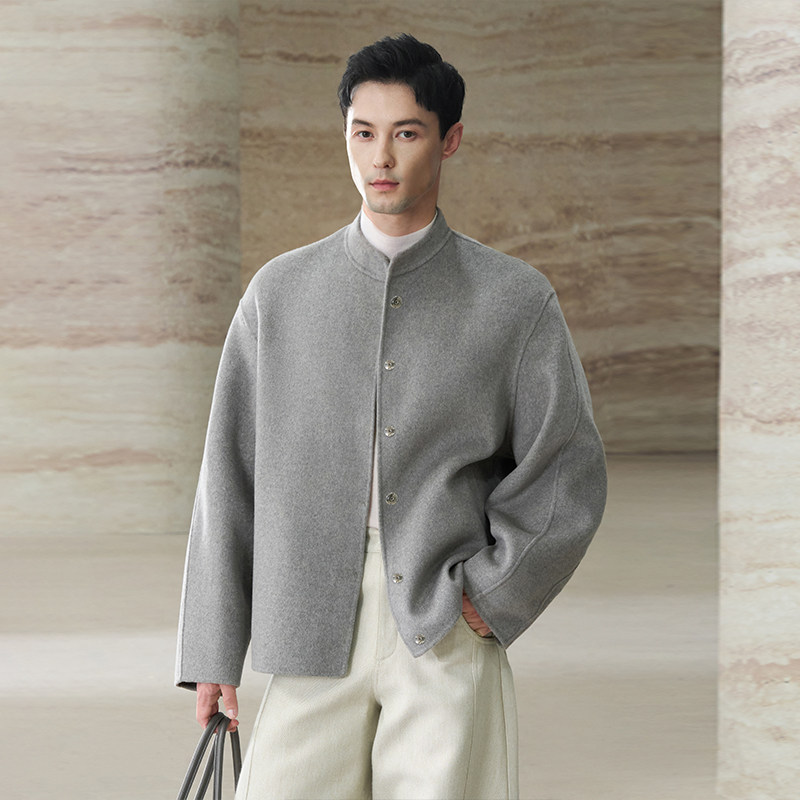 男士新款休闲外套呢子大衣短款秋季双面羊毛夹克外衣高端毛呢男装