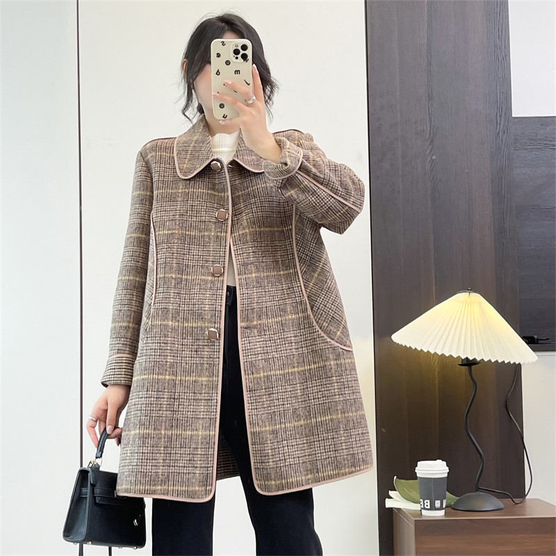 惠衣阁秋季女双面呢外套中长款外套韩版宽松轻熟格子外套呢子外套