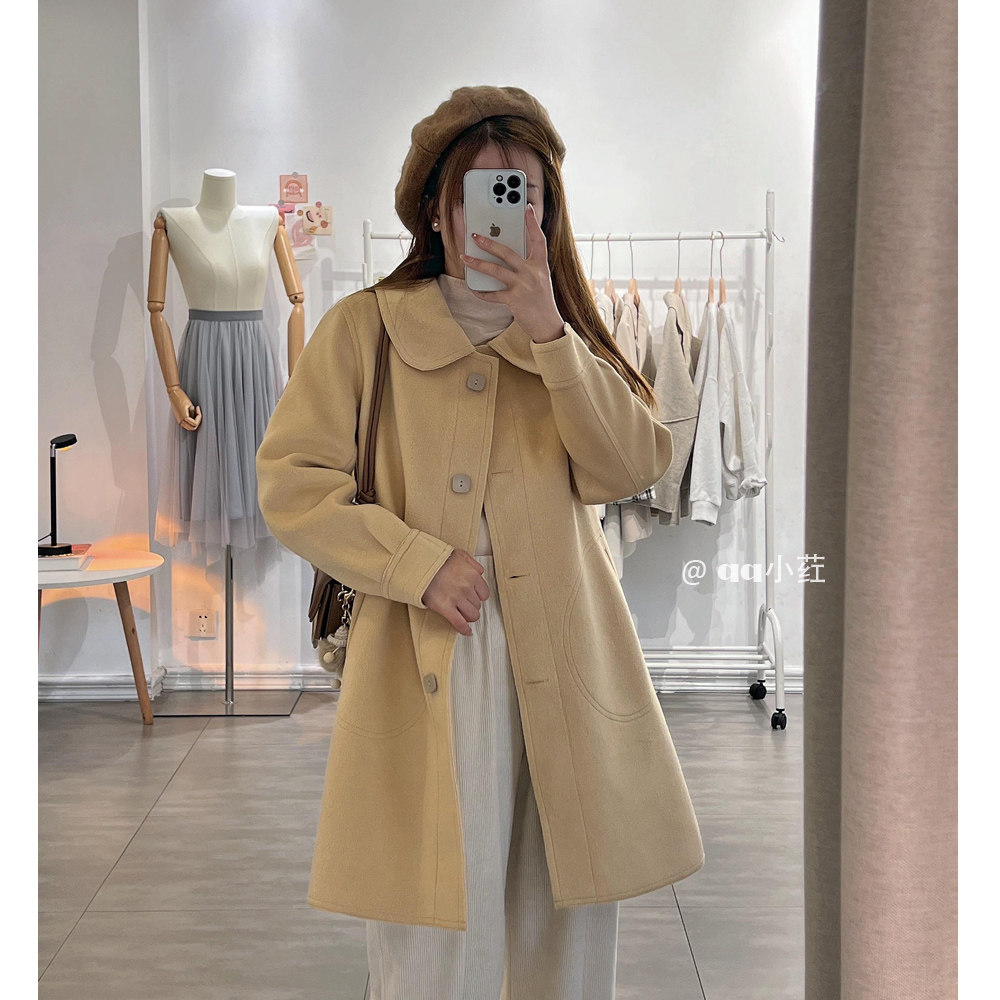 23480高级感小个子百搭双面羊绒大衣圆领显瘦毛呢外套呢子大衣女
