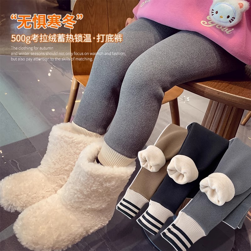 女童加绒打底裤冬装2025新款洋气一体羊羔绒儿童裤子女孩外穿长裤