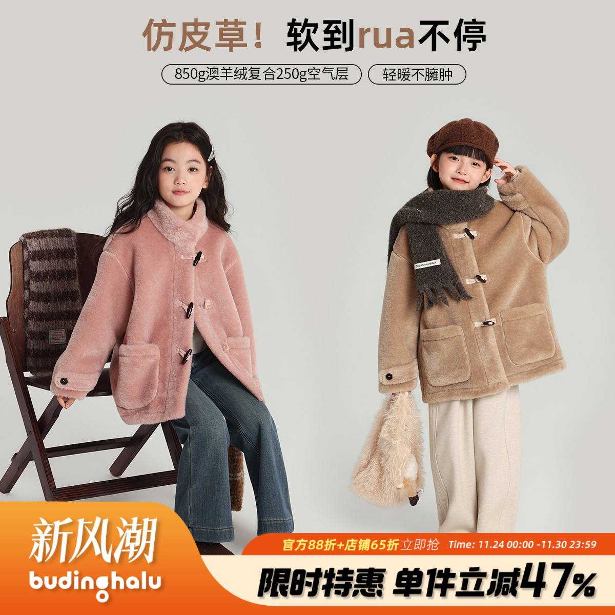 布丁哈鲁童装冬装女童保暖上衣2025秋冬款儿童仿皮草毛绒短外套