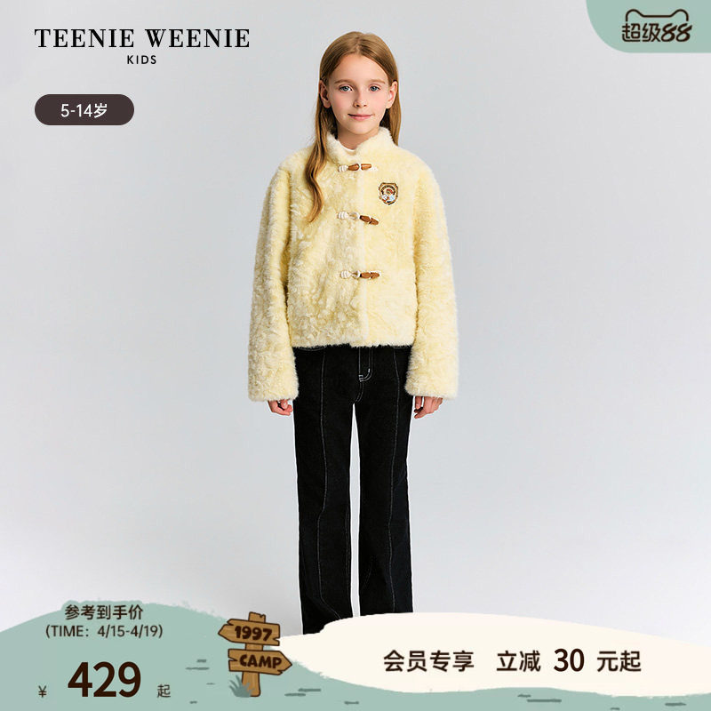 TeenieWeenie Kids小熊童装舒适秋冬季女童复古时尚仿皮草外套