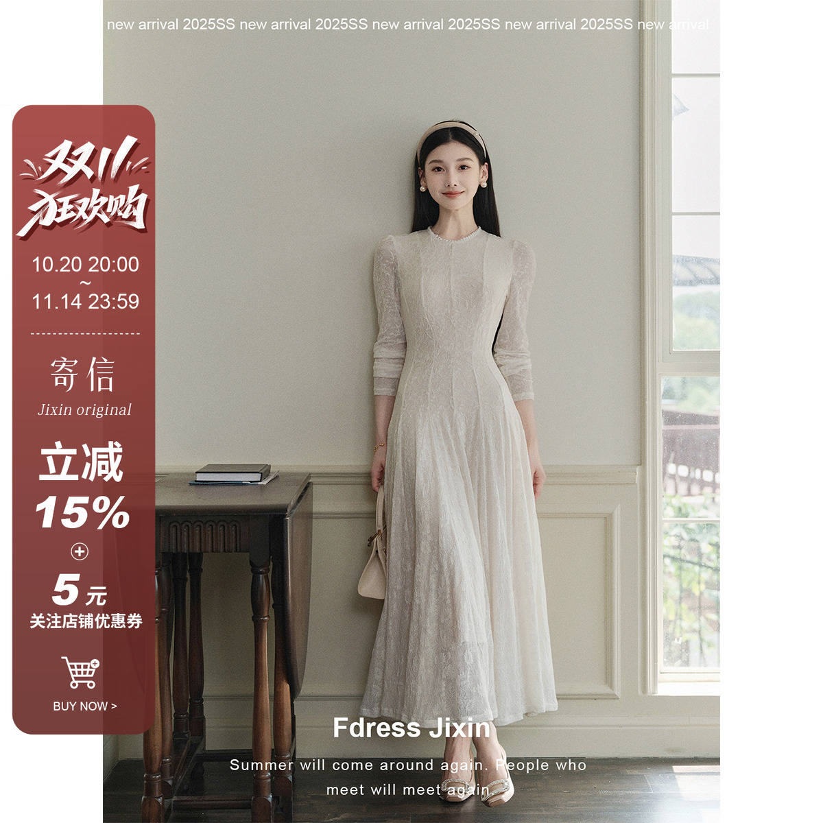 黑色蕾丝长袖连衣裙女2025新款内搭打底裙气质御姐风黑色显瘦裙子