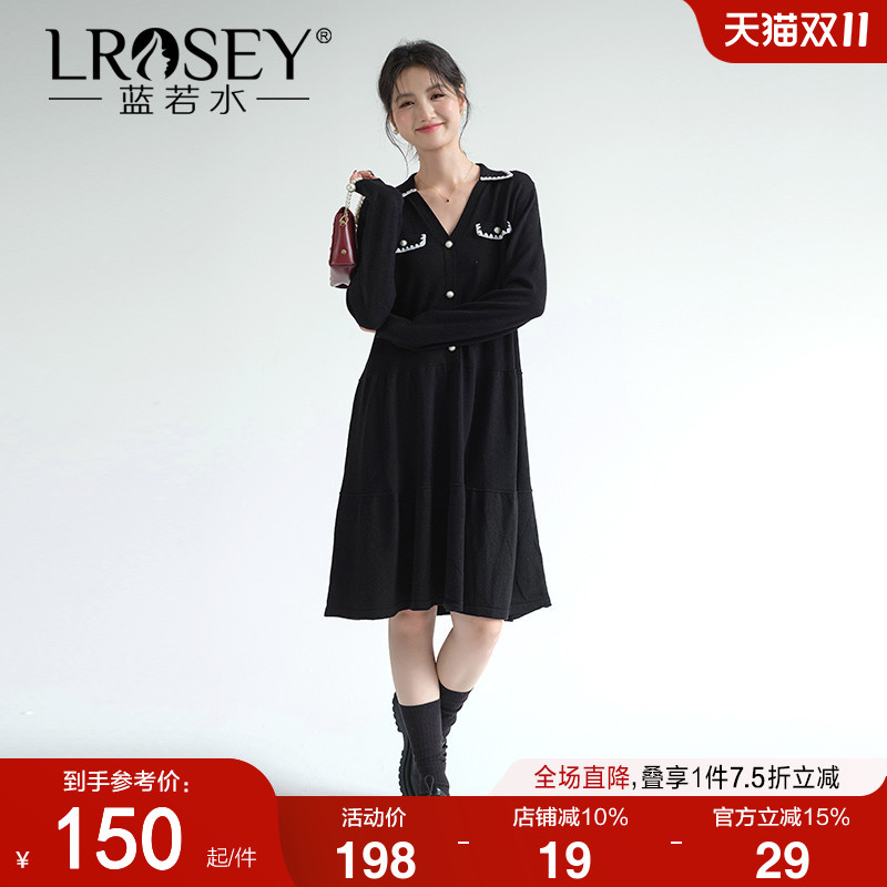 蓝若水大码女装小香风v领针织裙胖mm2025秋季新款气质打底连衣裙