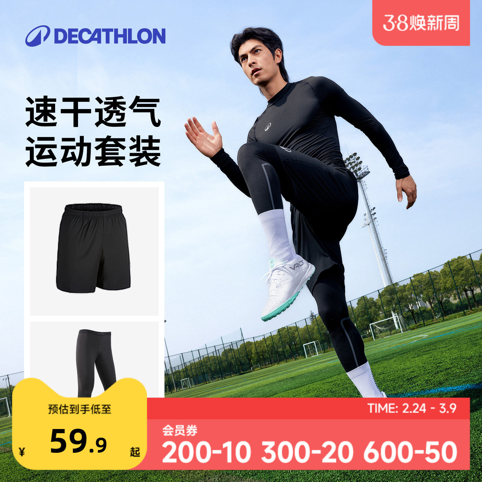迪卡侬压缩裤紧身跑步健身加绒训练打底足篮球运动跑步套装男SAY2