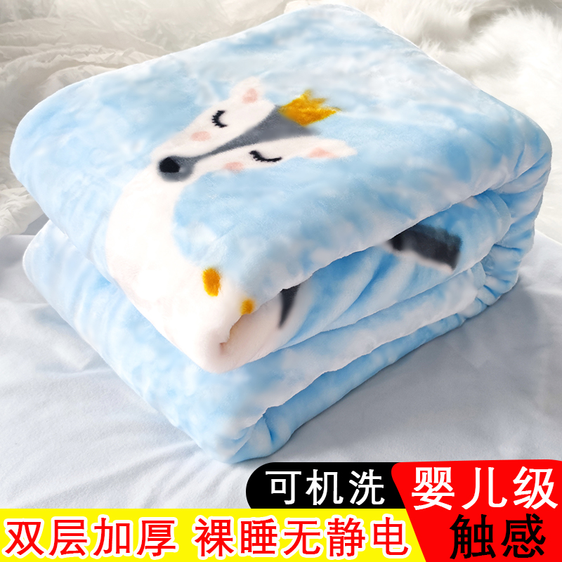 冬季婴儿毛毯a类加厚儿童双层宝宝盖毯新生儿毯子拉舍尔双面绒毯