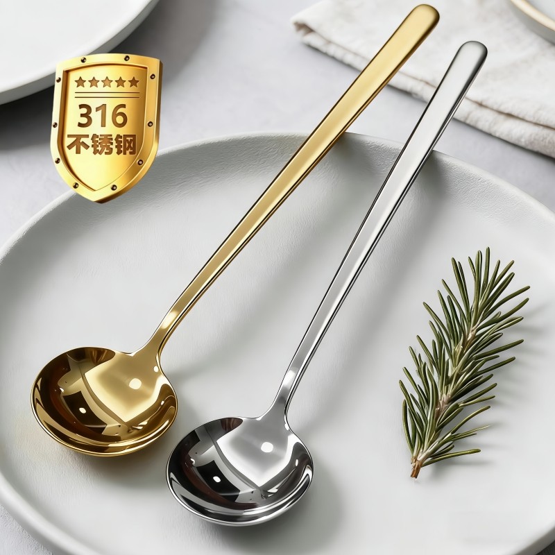 304不锈钢长柄勺子搅拌勺316精致汤匙甜品咖啡家用调料汤勺蜂蜜勺