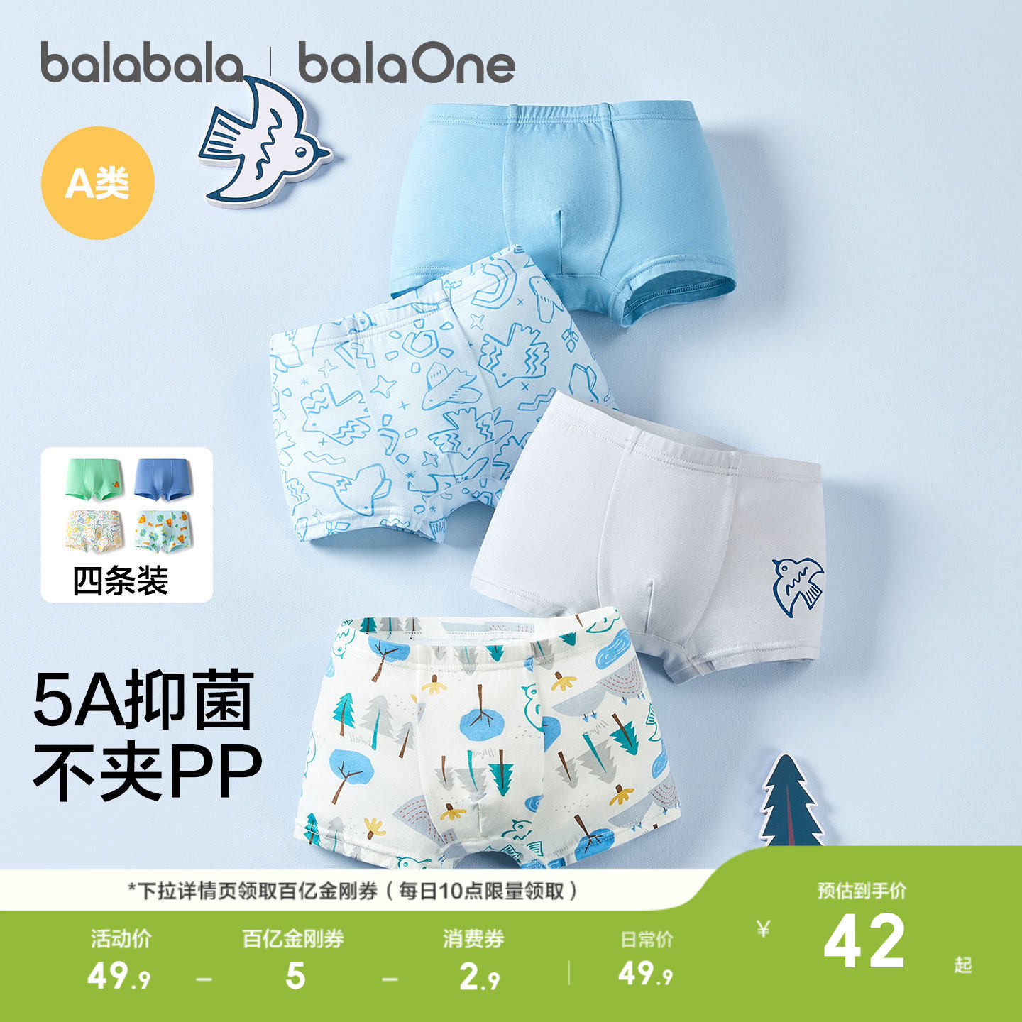 巴拉巴拉男童内裤棉平角儿童四角短裤小童宝宝不夹PP抗菌潮四条装