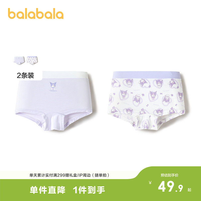 【库洛米IP联名】巴拉巴拉女童内裤平角三角四角儿童短裤两条装潮