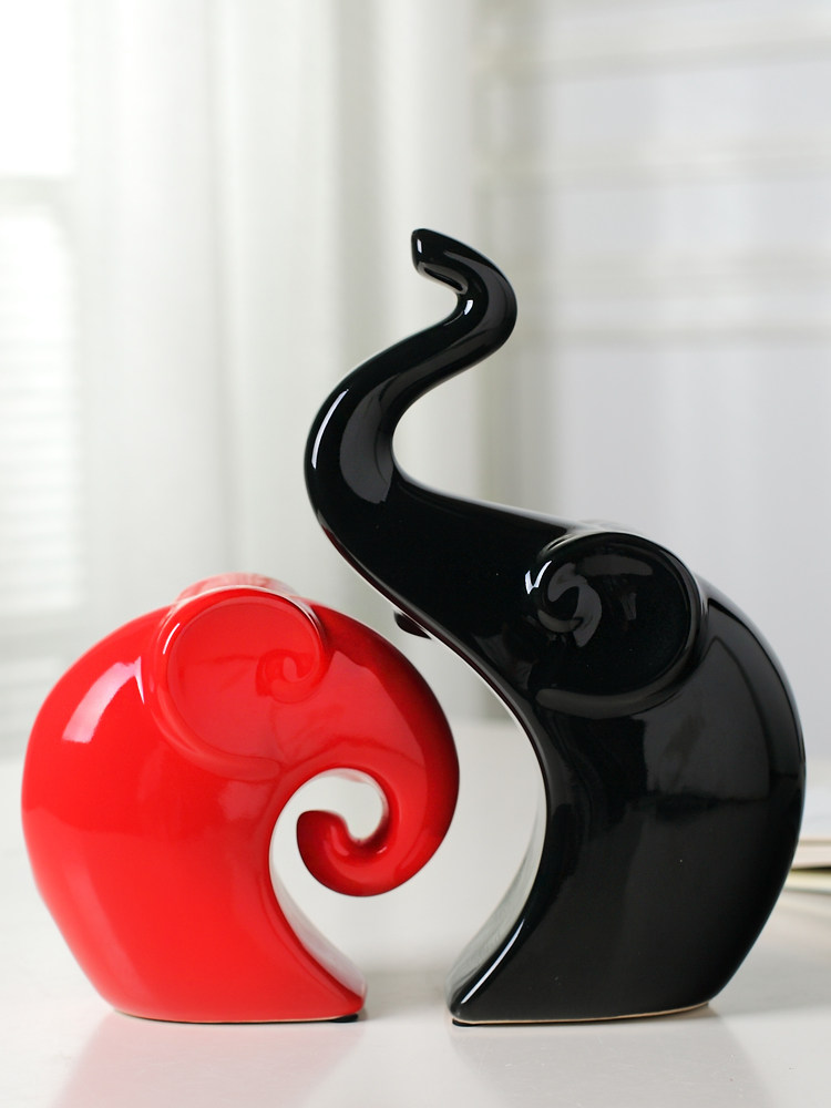 景德镇陶瓷客厅酒柜摆件 现代简约玄关装饰品摆设 结婚礼物情侣象