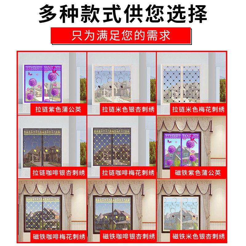 侧开 防蚊门帘魔术贴隐形家用帘子磁吸纱门自装磁铁纱窗网自粘纱