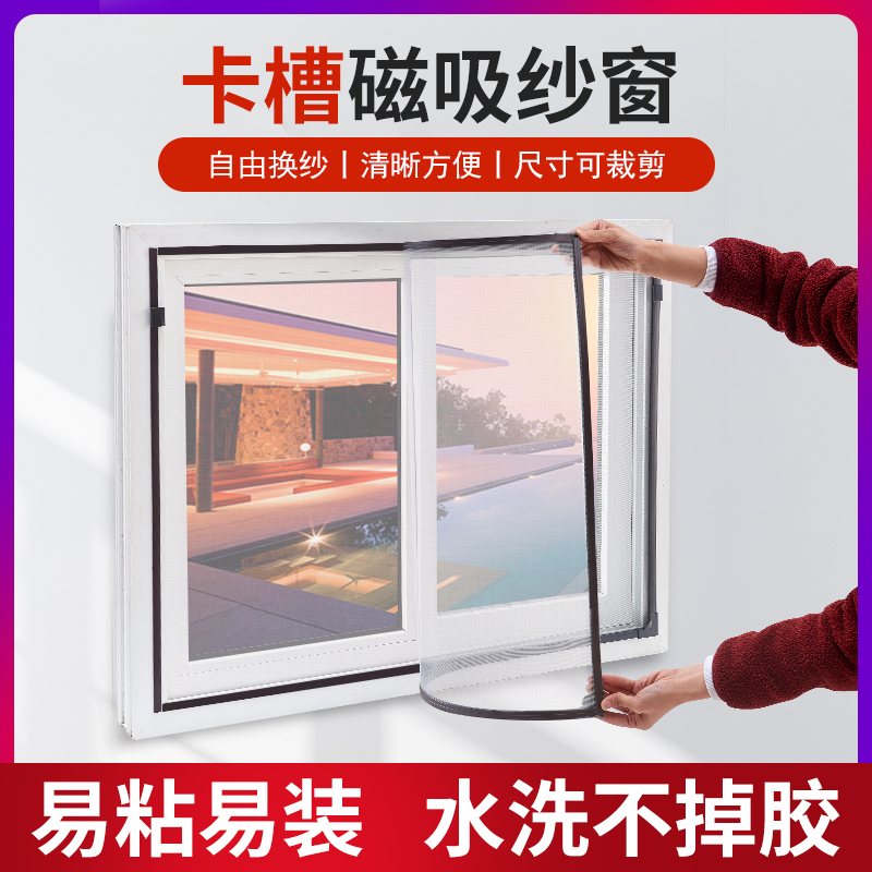 磁吸纱窗网自装防蚊磁性家用蚊网简易窗自粘式磁铁纱窗魔术贴沙窗