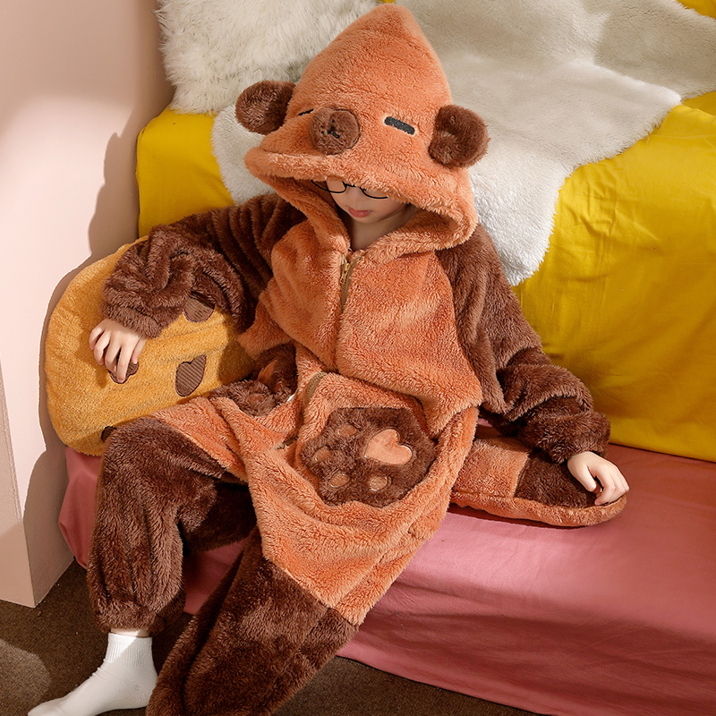 卡皮巴拉亲子连体睡衣男童珊瑚绒一家三口四口儿童冬季卡通家居服