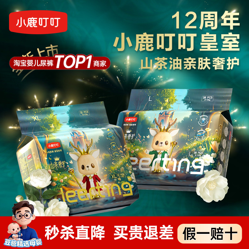 小鹿叮叮皇室医护级纸尿裤婴儿轻薄拉拉裤山茶油尿不湿2包NB-4XL