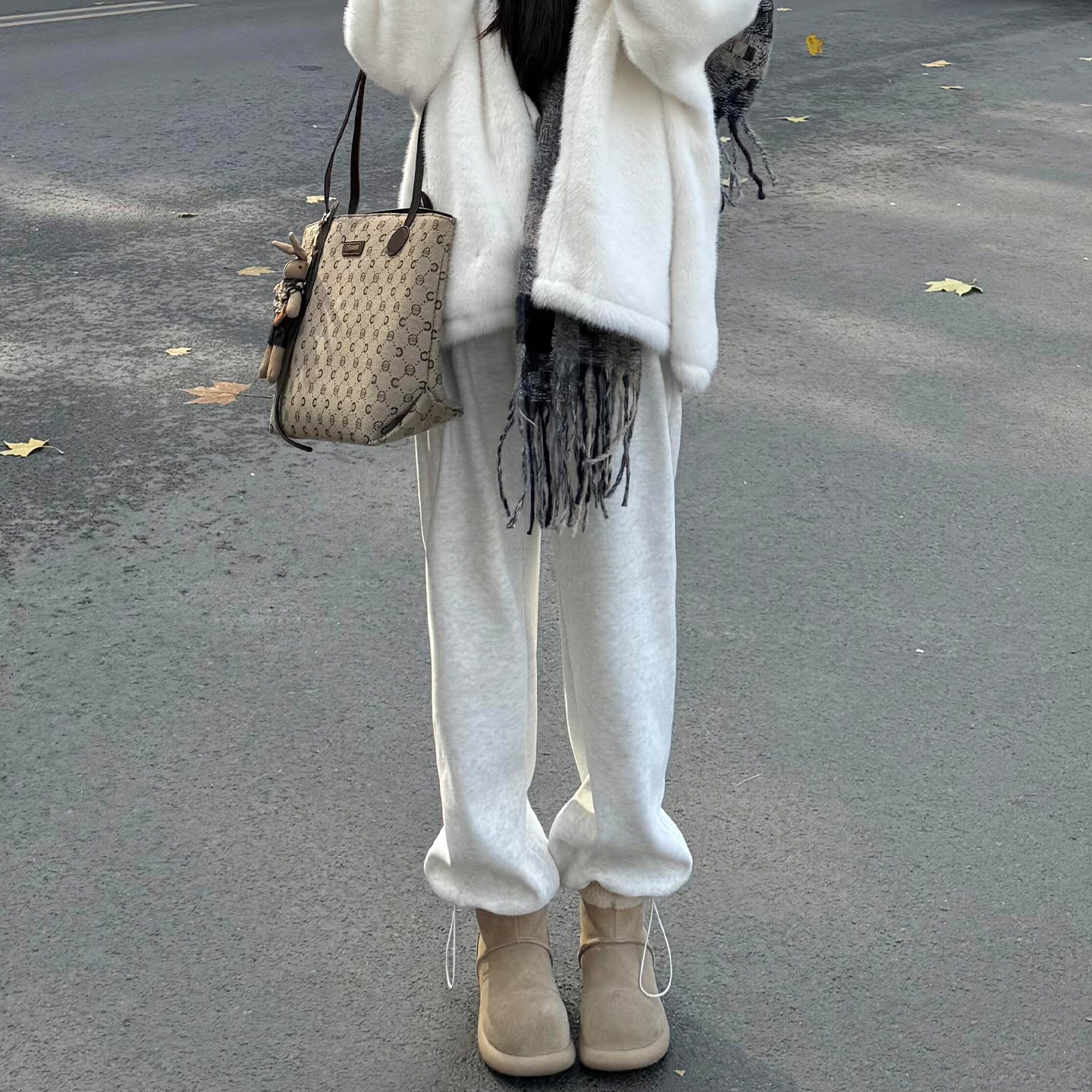 都市丽人加绒休闲裤女2025新款秋冬小个子大码白色加厚阔腿卫裤X