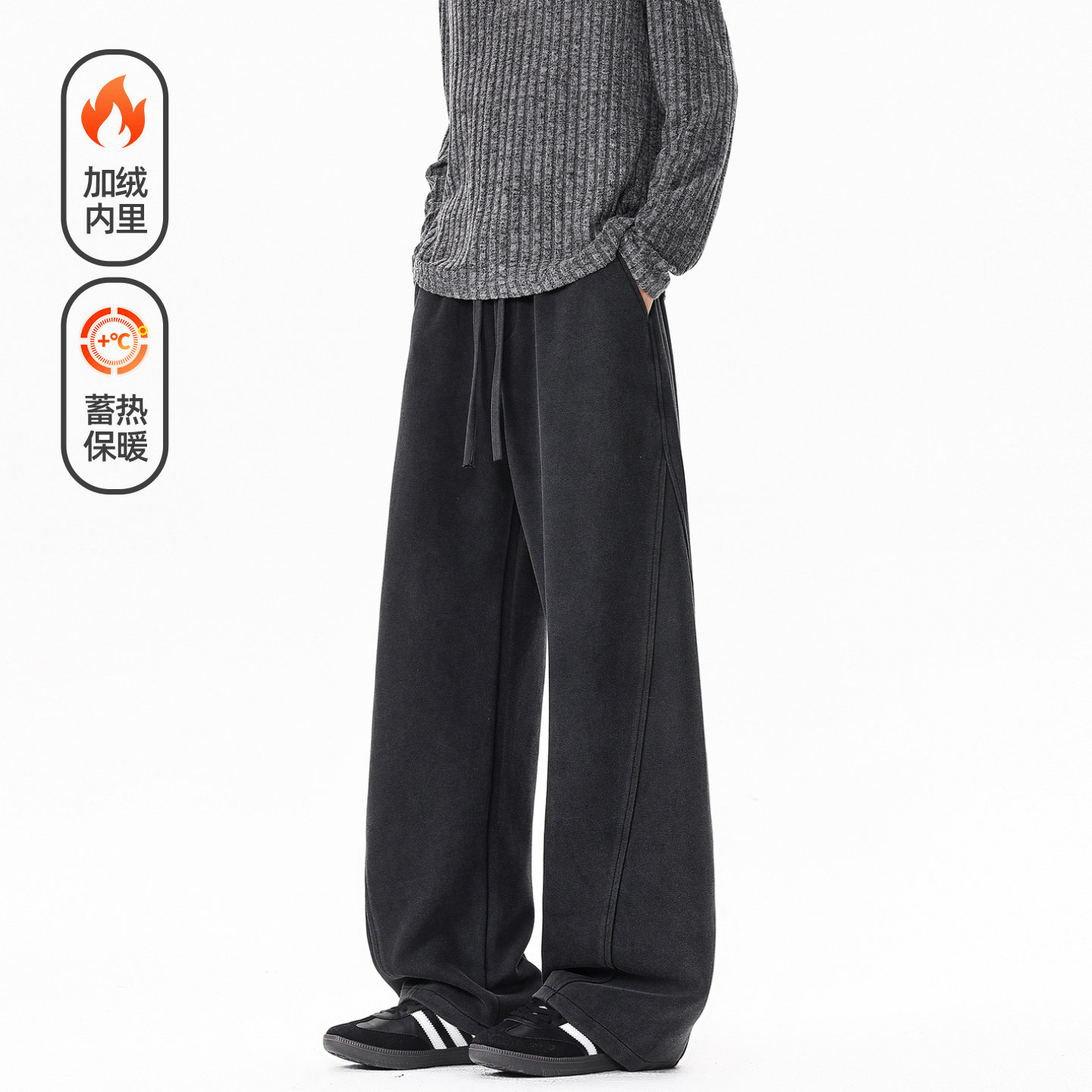 【内里加绒】太平鸟男装休闲裤25冬季新款宽松直筒运动缝标卫裤潮