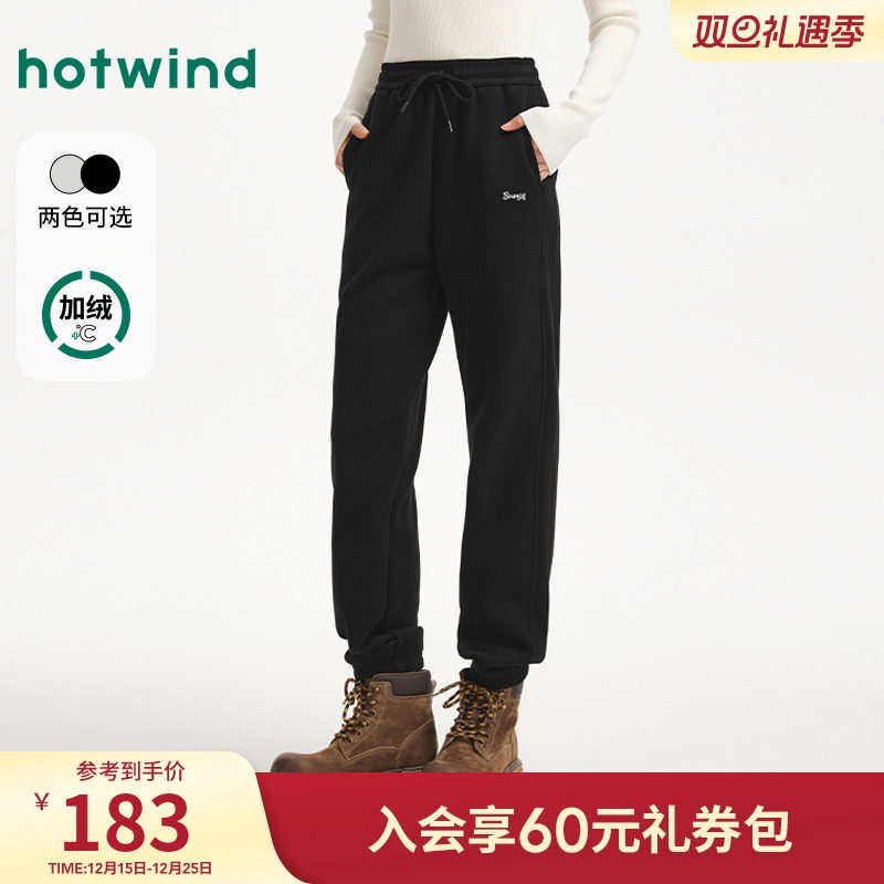 热风女士加绒卫裤2025年冬季新款舒适直筒裤通勤保暖休闲宽松长裤