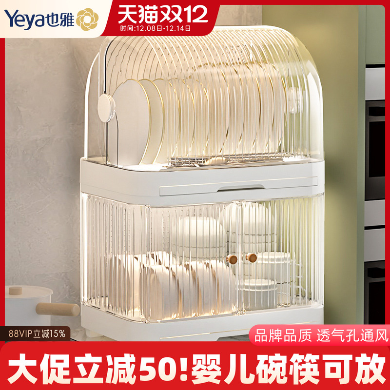 也雅厨房碗碟收纳架带盖沥水碗盘架碗柜碗筷子餐具收纳盒双层碗架