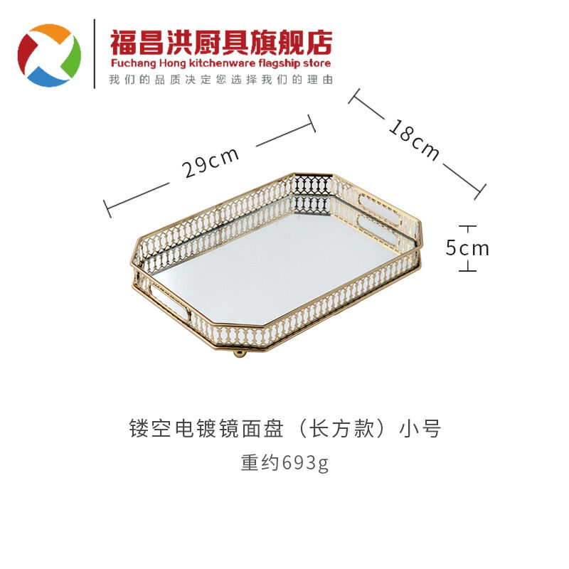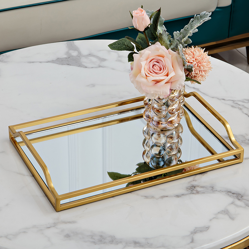 欧式金属镜面托盘桌面茶几水杯收纳盘茶盘样板房轻奢高档装饰摆件