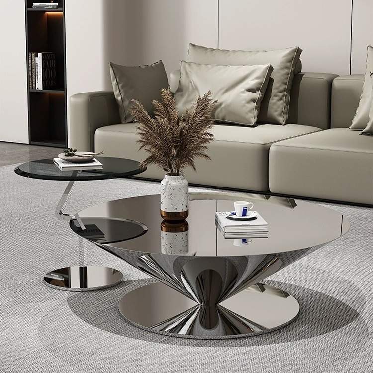 意式不锈钢镜面茶几轻奢高级感客厅家用圆桌现代别墅设计师款茶桌