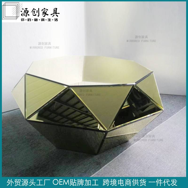 镜面茶几美式家具玻璃装饰桌子客厅沙发边几置物台陈设桌外贸直销