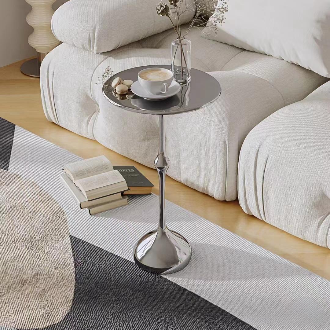 2I水滴边几小户型角几不锈钢镜面圆形小茶几轻奢简约迷你沙发小边