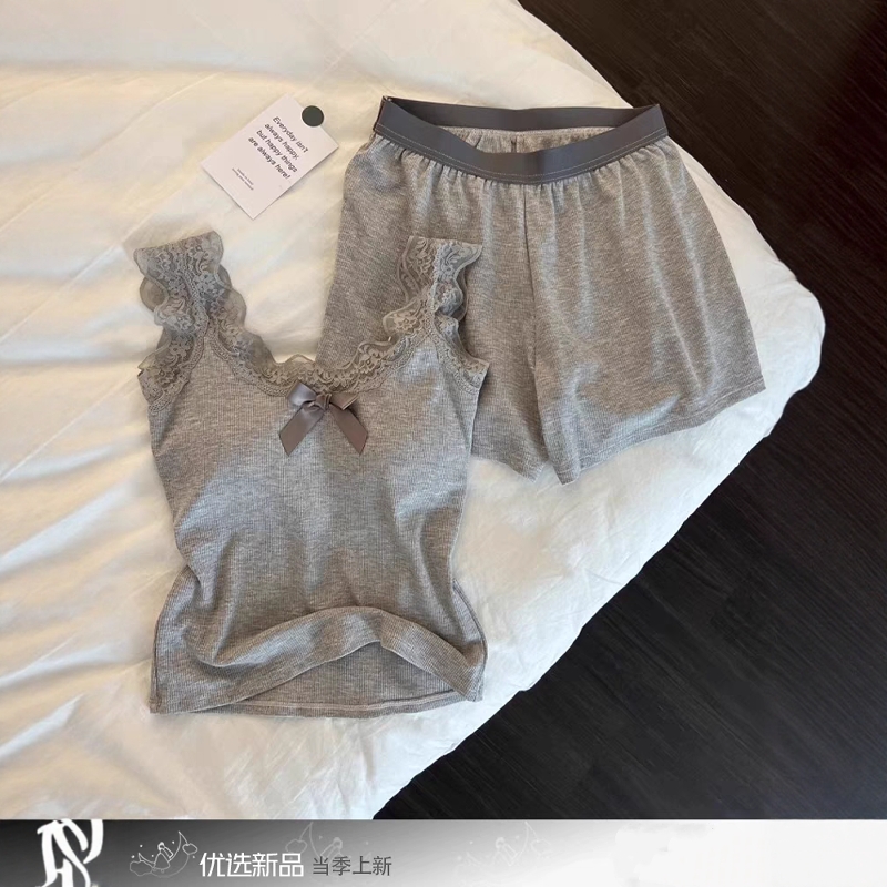 纯欲辣妹蕾丝边吊带睡衣女2025夏款性感带胸垫背心短裤家居服套装